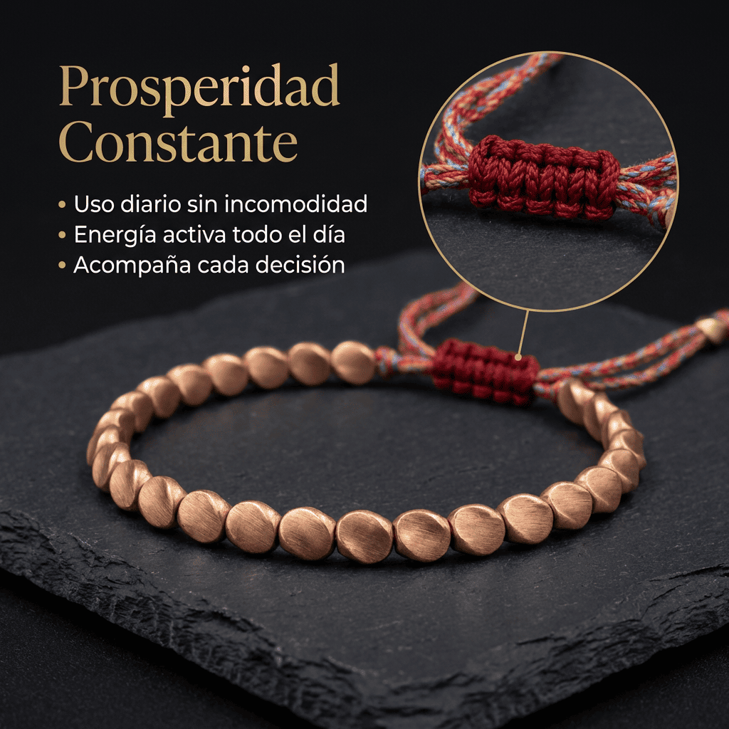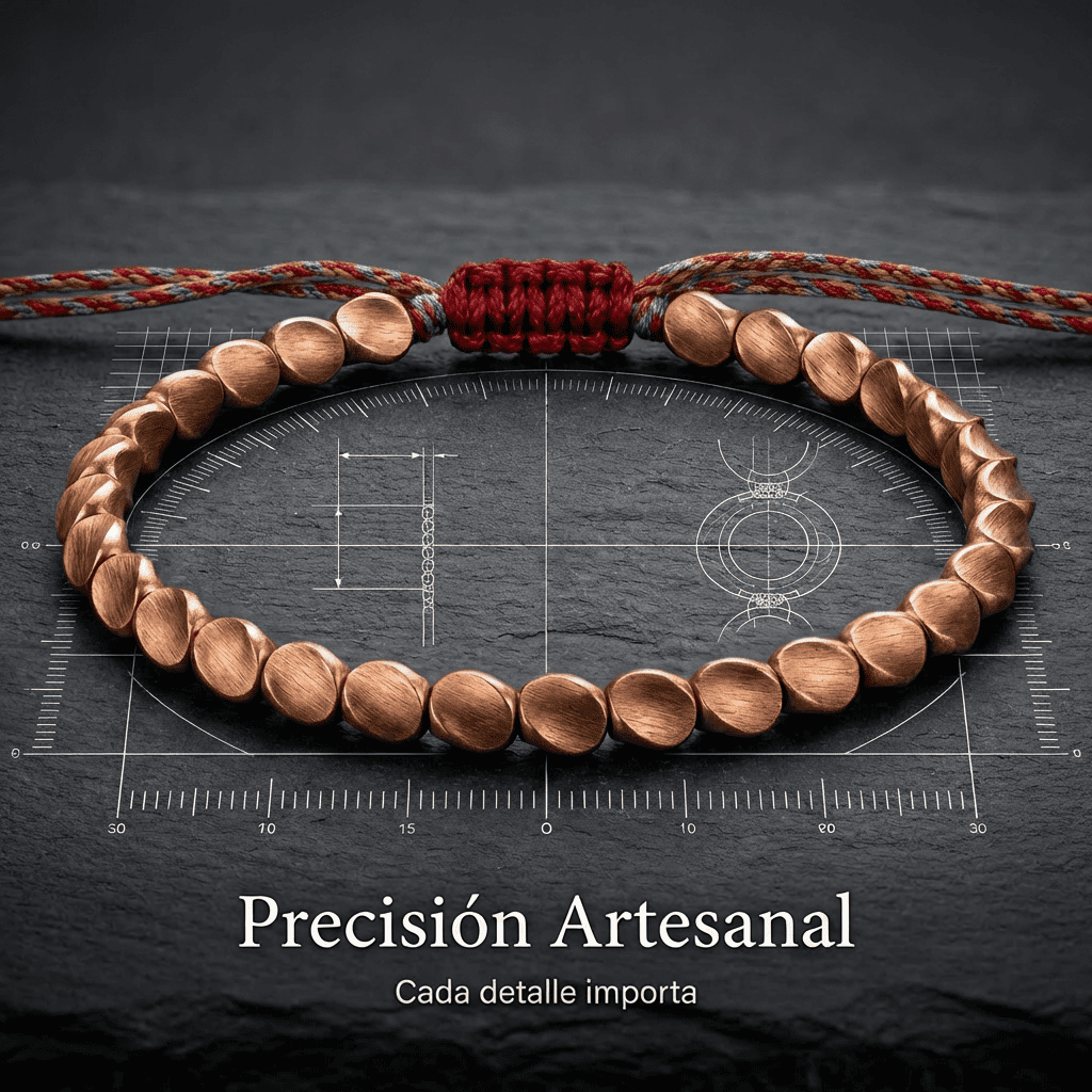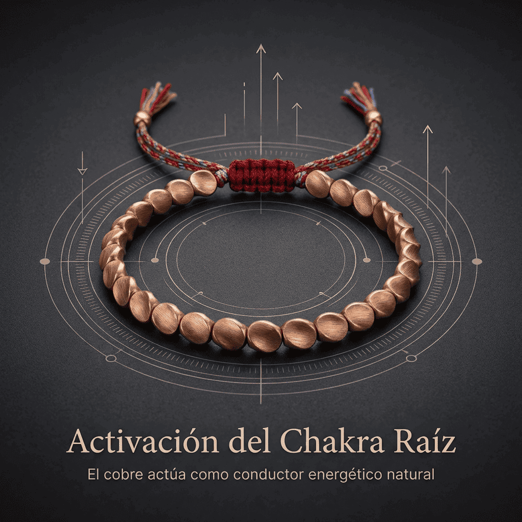 “El cobre es el conductor espiritual más poderoso de la tierra. Al usarlo en contacto con la piel, desbloquea el Chakra Raíz y libera el flujo de prosperidad.”